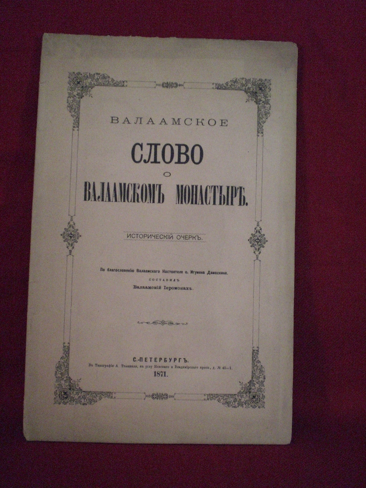 Валаамское слово о валаамскомъ монастыре исторический очеркъ