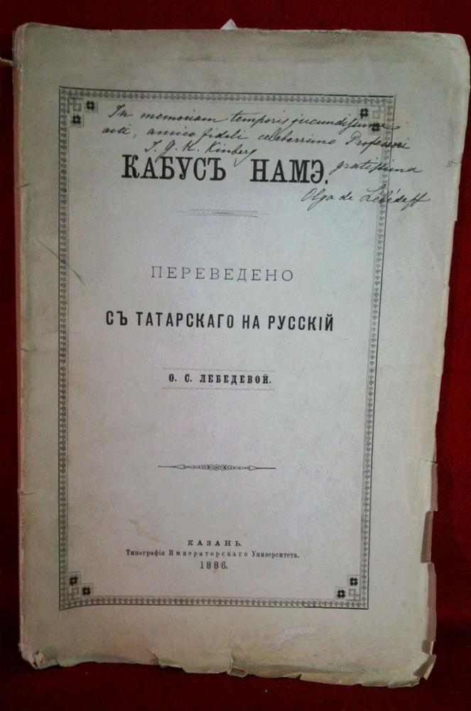 Лебедевой, О. С.: Кабусъ намэ. Переведено съ татарскаго на русский. – История и военная история / Historia ja militaria