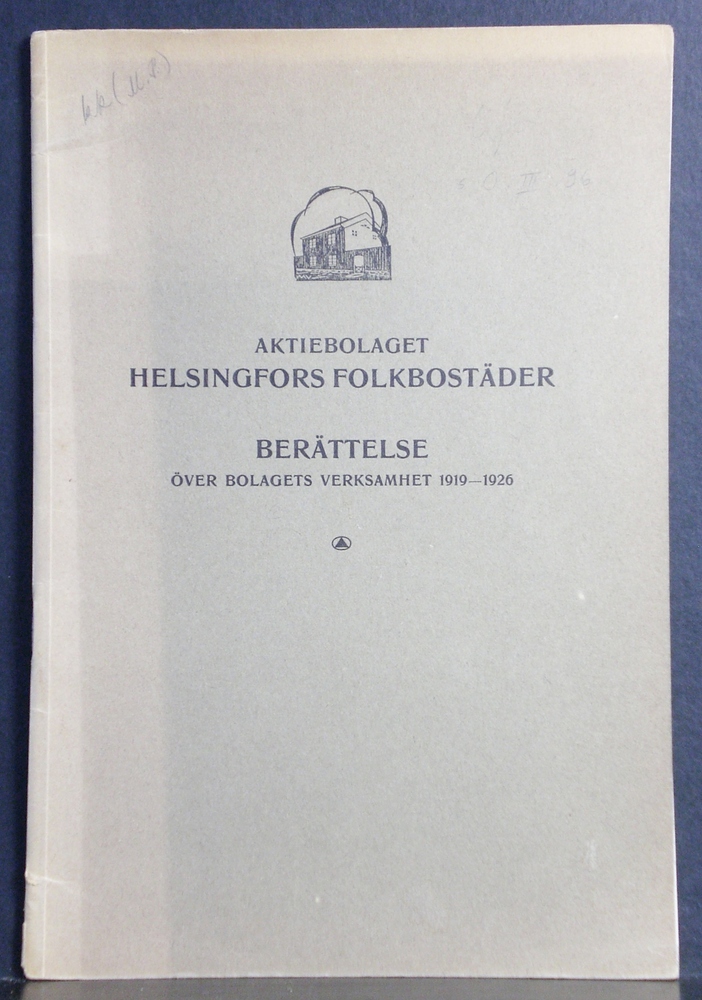 Aktiebolaget Helsingfors folkbostäder. Berättelse över bolagets verksamhet 1919-1926