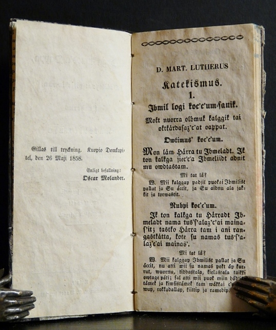 Saamenkielinen katekismus, Anders Andelinin kääntämä. Catechism in Sami language, translated by Anders Andelin in 1860.