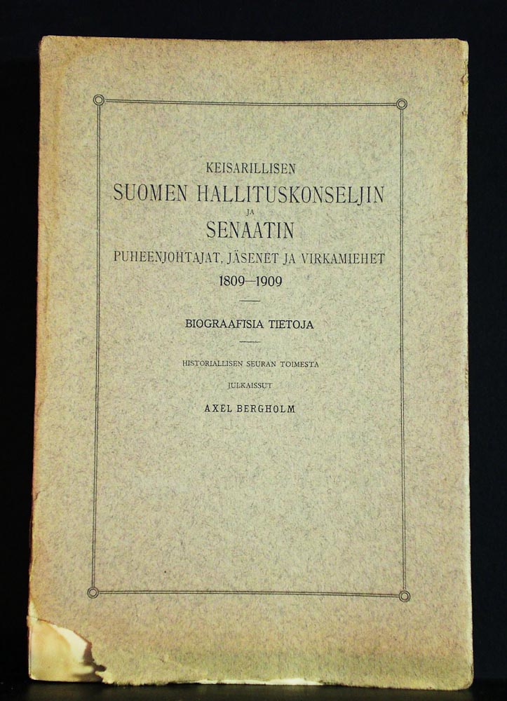 Bergholm, Axel: Keisarillisen Suomen hallituskonseljin ja Senaatin puheenjohtajat, jäsenet ja virkamiehet 1809-1909