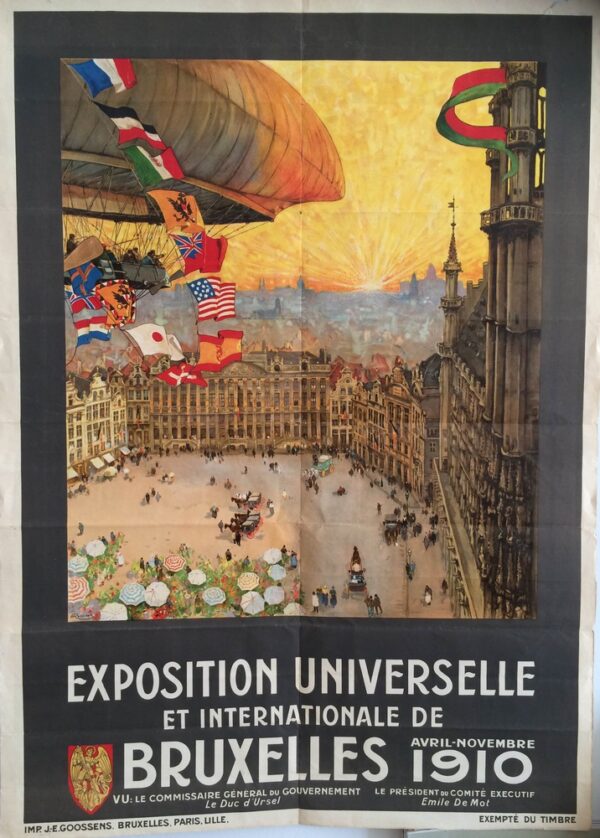 Henri Cassiers’ original world exhibition poster from 1910s. Large-sized lithographic print.