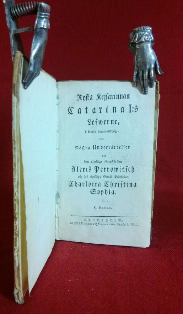 Elmén, C.: Ryska Kejsarinnan Catarina I:s Lefwerne, i korrta sammandrag, jemte några underrättelser om den olycklige Storförsten Aleksis Petrowitch och des olyckliga Gemål prinsessan Charlotta Christina Sophia. – Venäjän historia ja maantiede