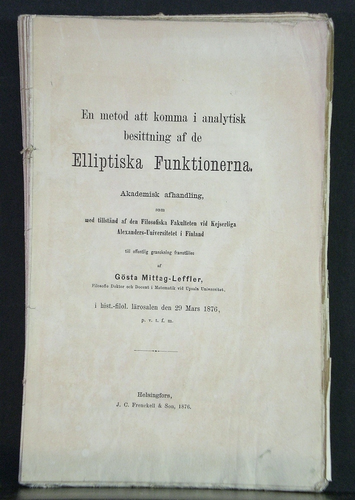 Mittag-Leffler, Gösta: En metod att komma i analytisk besittning af de elliptiska funktionerna (1876)
