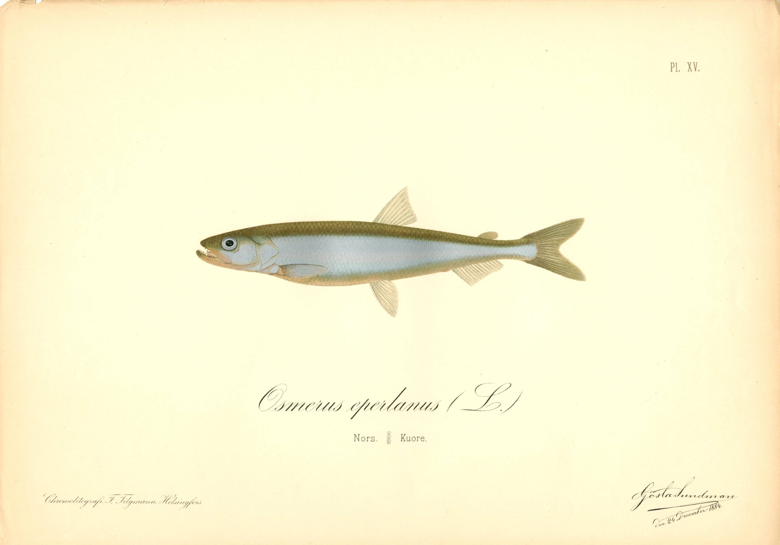 Original 19th-Century Fish print of the European smelt – From The Fishes of Finland
