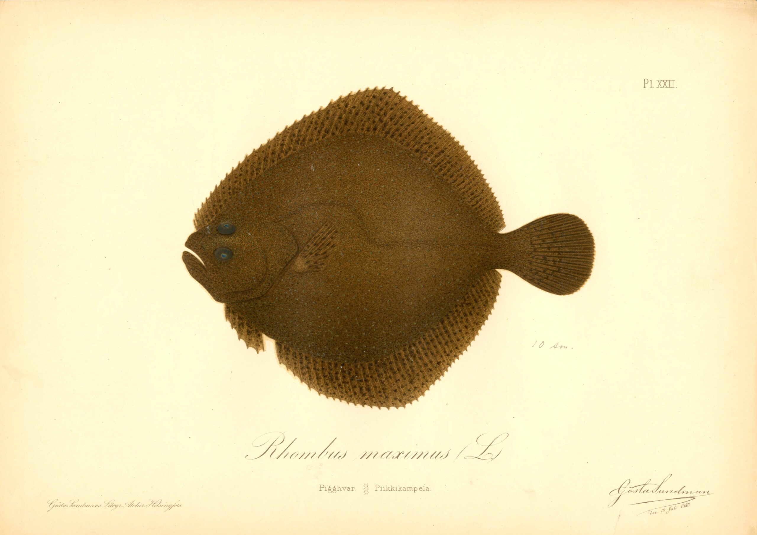 Original 19th-Century Fish print of a Turbot – From The Fishes of Finland