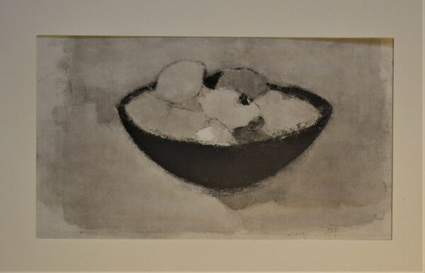 Original reproduction of Helene Schjerfbeck oil painting ”Lemons in a bowl”. This reproduction is from a portfolio that was made by art collector Gösta Stenman with Schjerfbeck’s permission. The portfolio included 48 good quality black-and-white reproductions. Edition of the portfolios was limited to 500 copies. This print is from the portfolio number 183/500.
