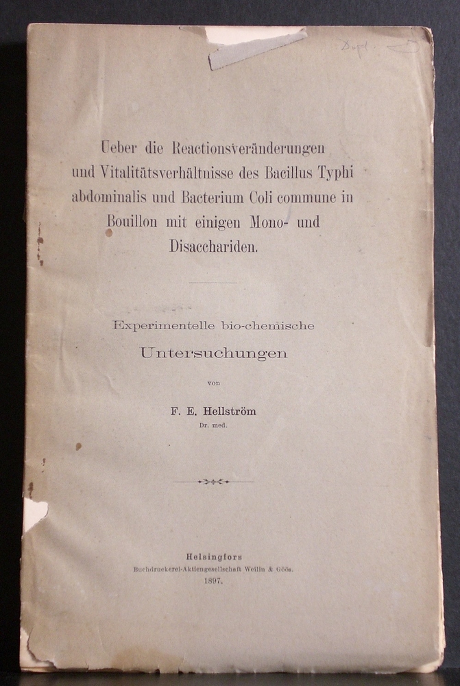 Hellström, F. E.: Ueber die Reactionsveränderungen und Vitalitätsverhältnisse des Bacillus Typhi abdominalis und Bacterium Coli commune in Bouillon mit einigen Mono- und Disacchariden (1897)