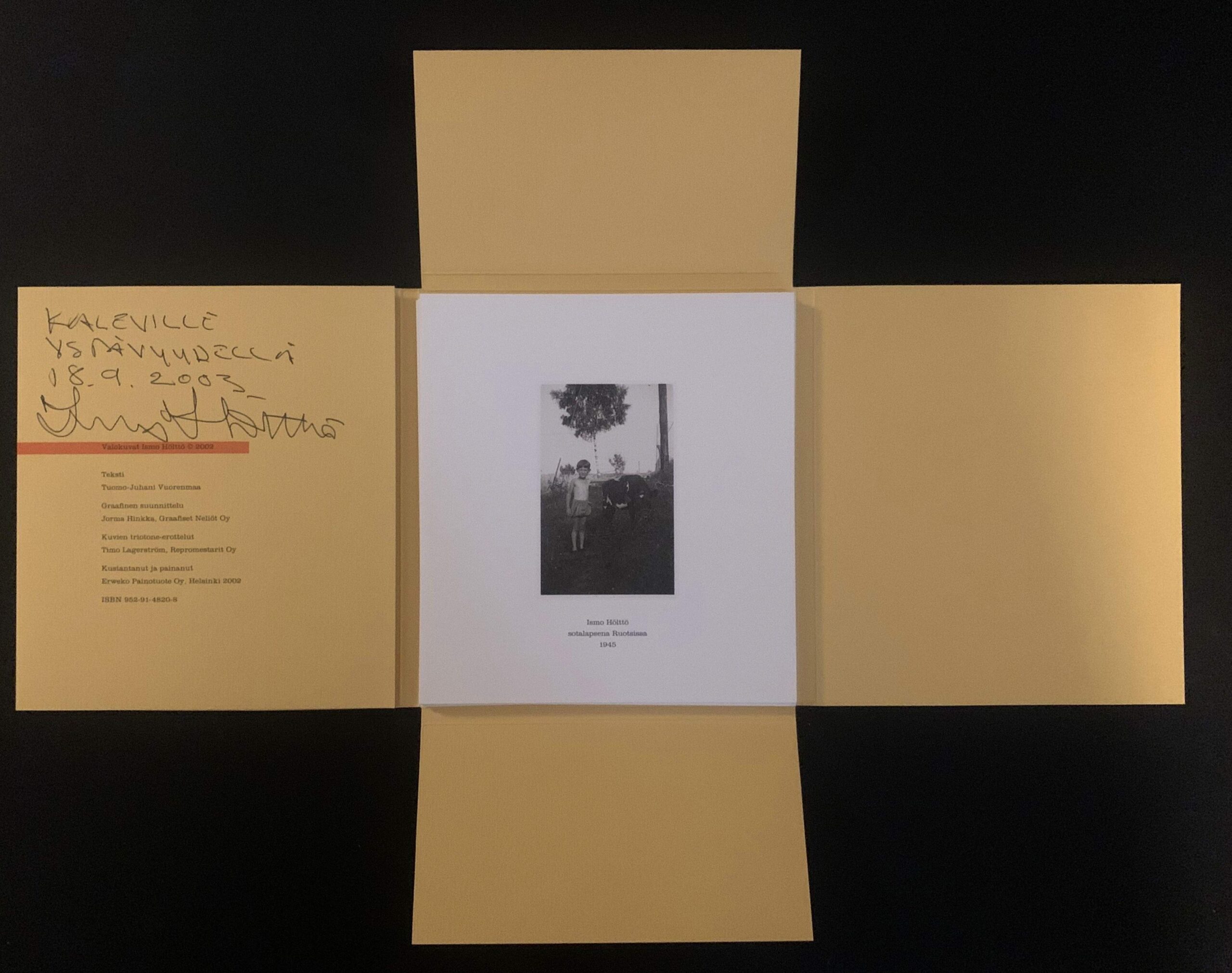 Helsinki, Erweko, 2002. Limited edition, nr. 109/600. Orange cardboard portfolio. A four-page text insert with one picture on cover and 16 loose black&white picture plates. Dimensions 16,5 x 15 cm.