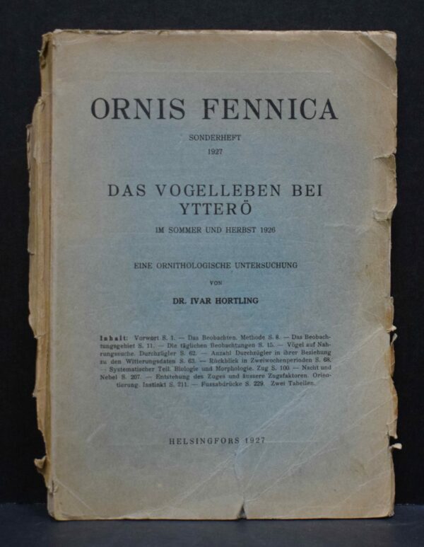 Ornis Fennica. Das Vogelleben bei Ytterö im Sommer und Herbst 1926 – Eine ornithologische Untersuchung