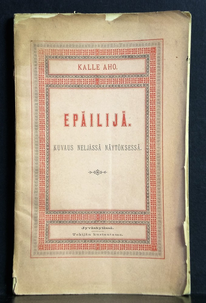 Aho, Kalle: Epäilijä. Kuvaus neljässä näytöksessä (1886)