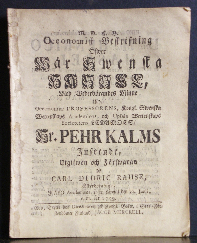 Preses: Pehr Kalm (1716-1779) – Respondent: Carl Didric Rahse (1737-1799)