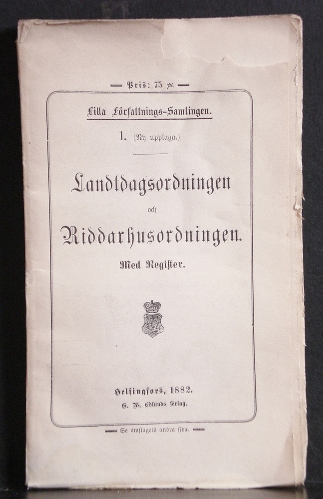 Landtdagsordningen. Riddarhusordningen. Lag för åhörare wid ståndens sammanträden. Med utförligt register (1882)