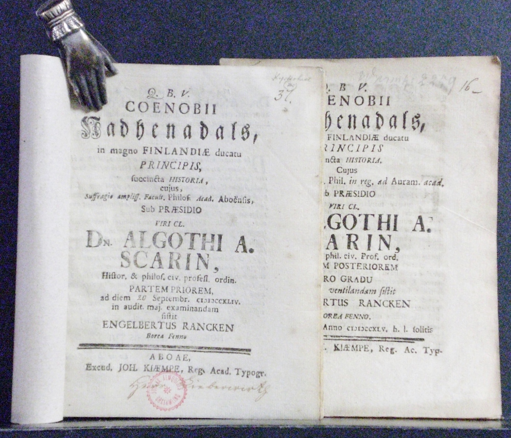 Naantali – Nådendal. Scarin, Algothus: Coenobi Nadhenadals, inmagno Finlandiae ducatu principis succineta historia. Partem priorem. Partem posteriorem. Resp. Engelbertus Rancken. – kaupungit