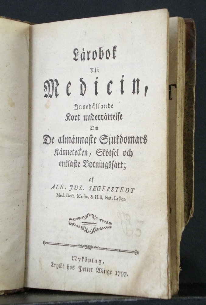 Segerstedt, Alb. Jul: Lärobok uti medicin (1797); Petersen, Peter: Rese-Apothequet (1766)