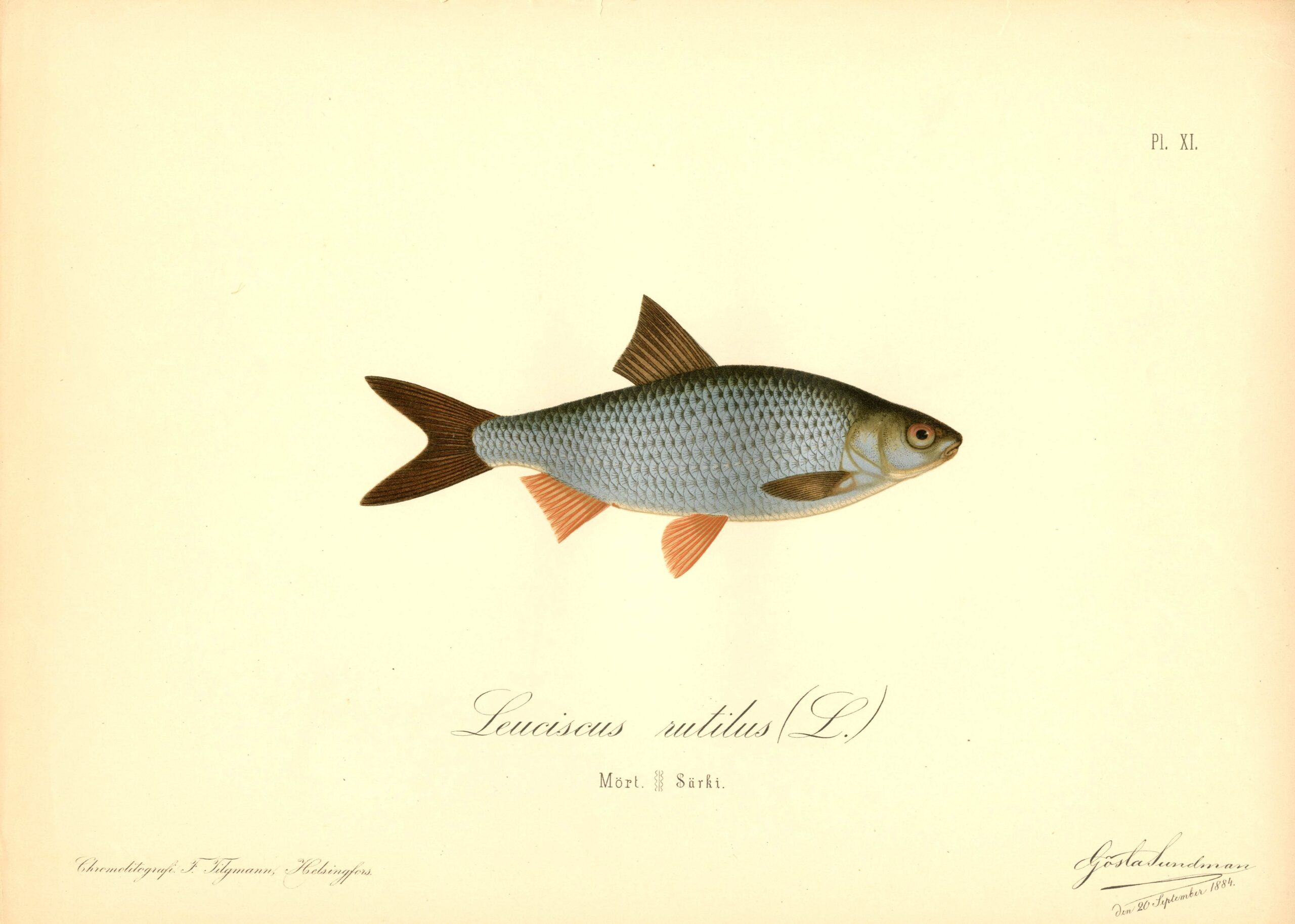 Original 19th-Century Fish illustration of the Roach – From The Fishes of Finland